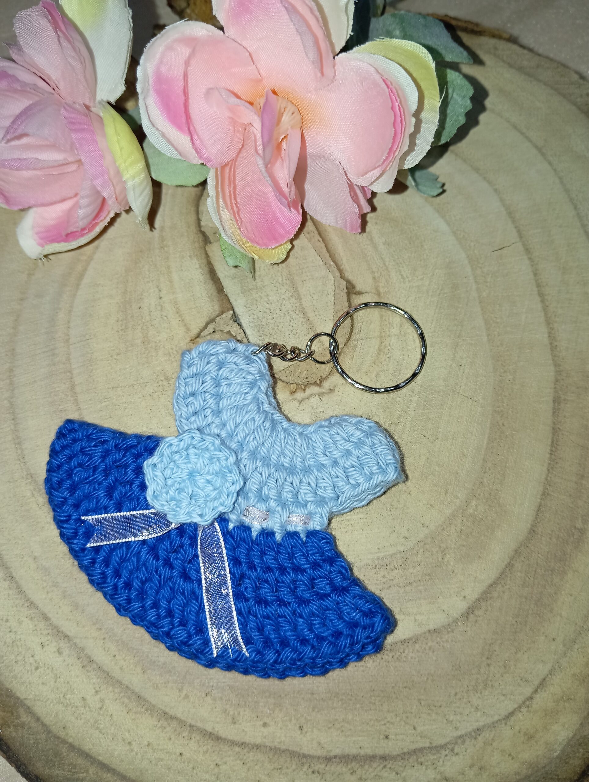 Holita unos llaveros muy bonitos en forma de vestido pequeños para que sean muy cómodos y ocupen poquito.