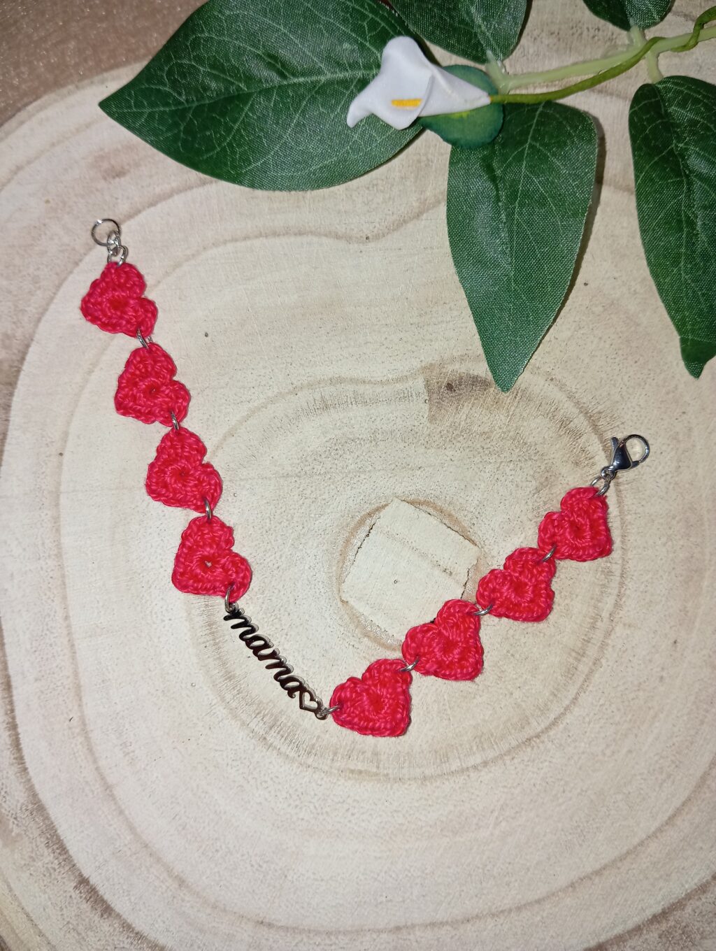Holita unas pulseras hechas en crochet los corazones con en nombre de nuestro ser más querido «MAMA» en acero dorado o plateado para regarles a nuestras madres en su día especial para demostrar nuestro cariño hacia ellas. Son muy cómodas de diferentes colores para combinar con nuestros looks. Todo nuestro trabajo esta hecho a mano…