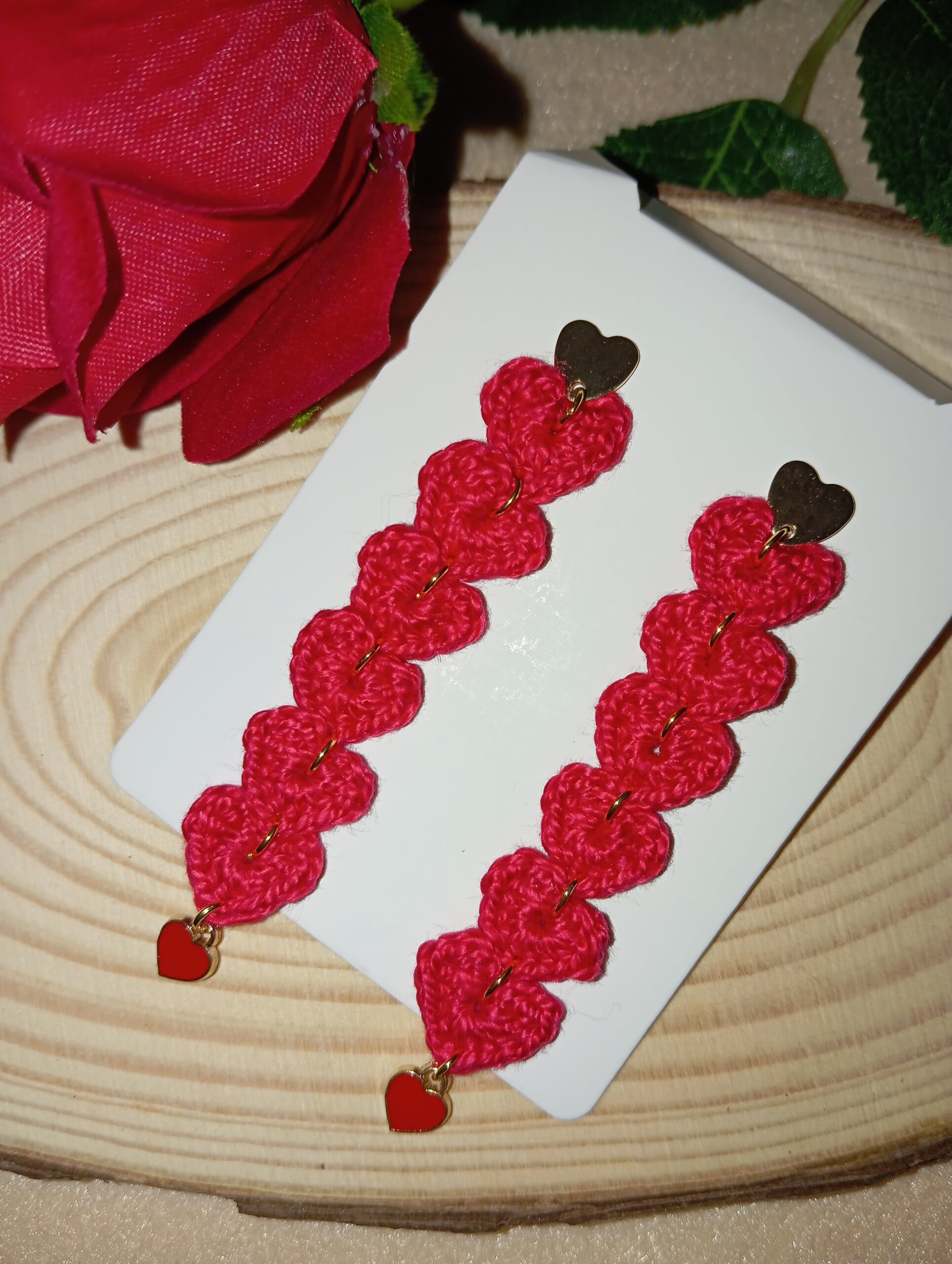 Holita pendientes nuevos de corazones a crochet y acero dorado con colgante pequeñito de corazón en acero. Son pequeños y bonitos para llevar en nuestro día a día y dar un toque de color a días de lluvia o simplemente dar un toque de color a nuestro rostro también son ideales para regalar en «San Valentín» a nuestra pareja , amiga, o familiar al que queremos mucho 💕.
