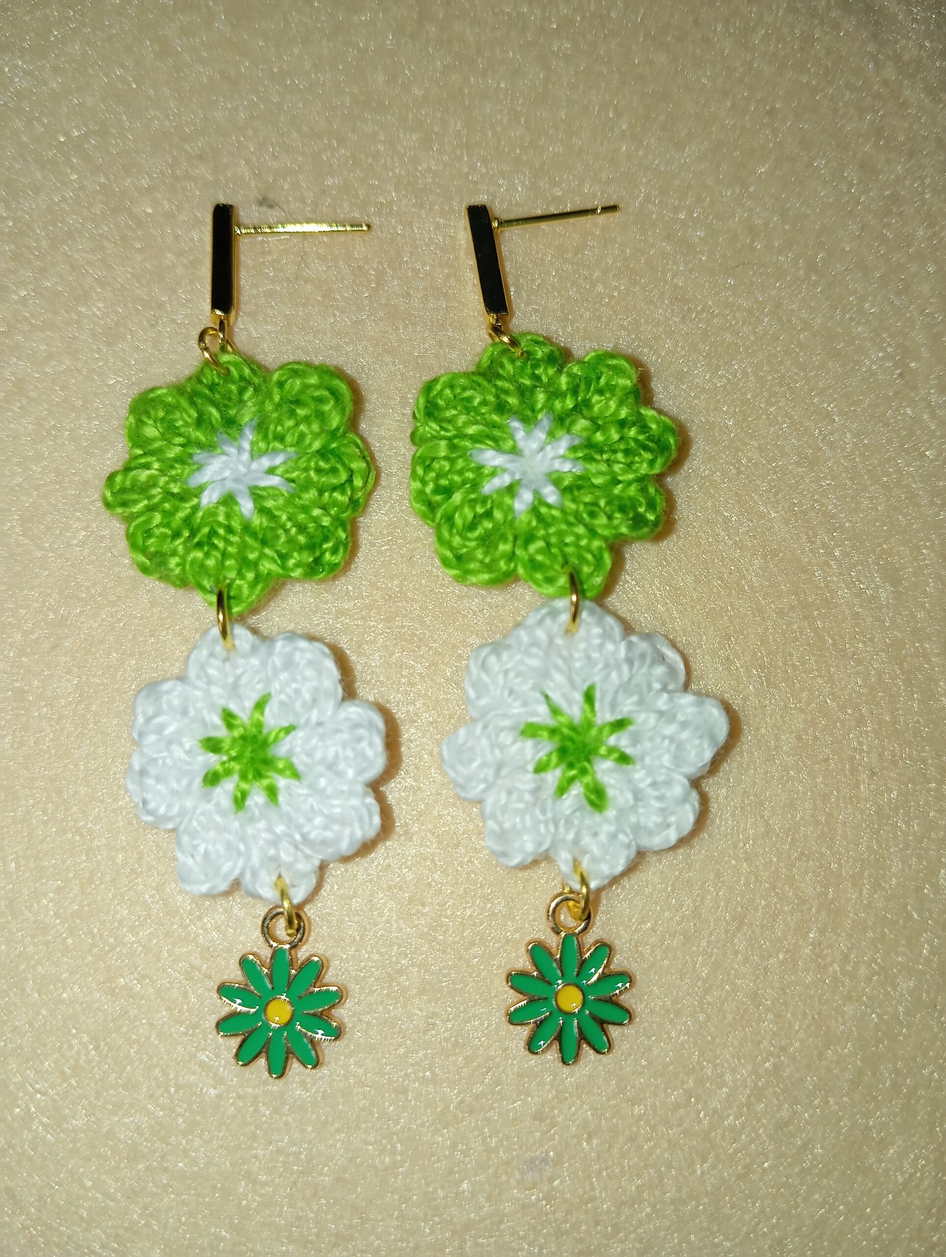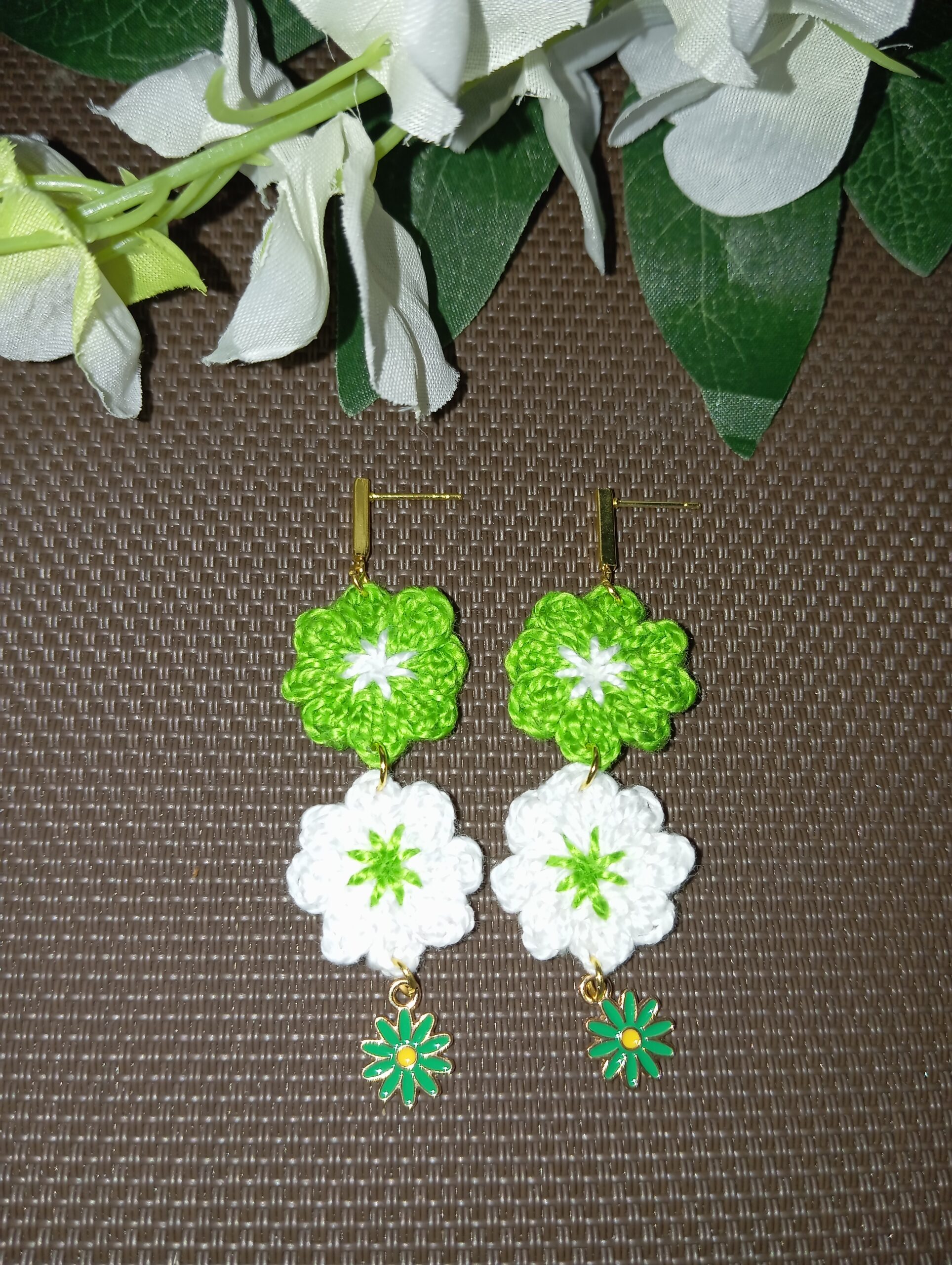Pendientes de margaritas verdes y blancas