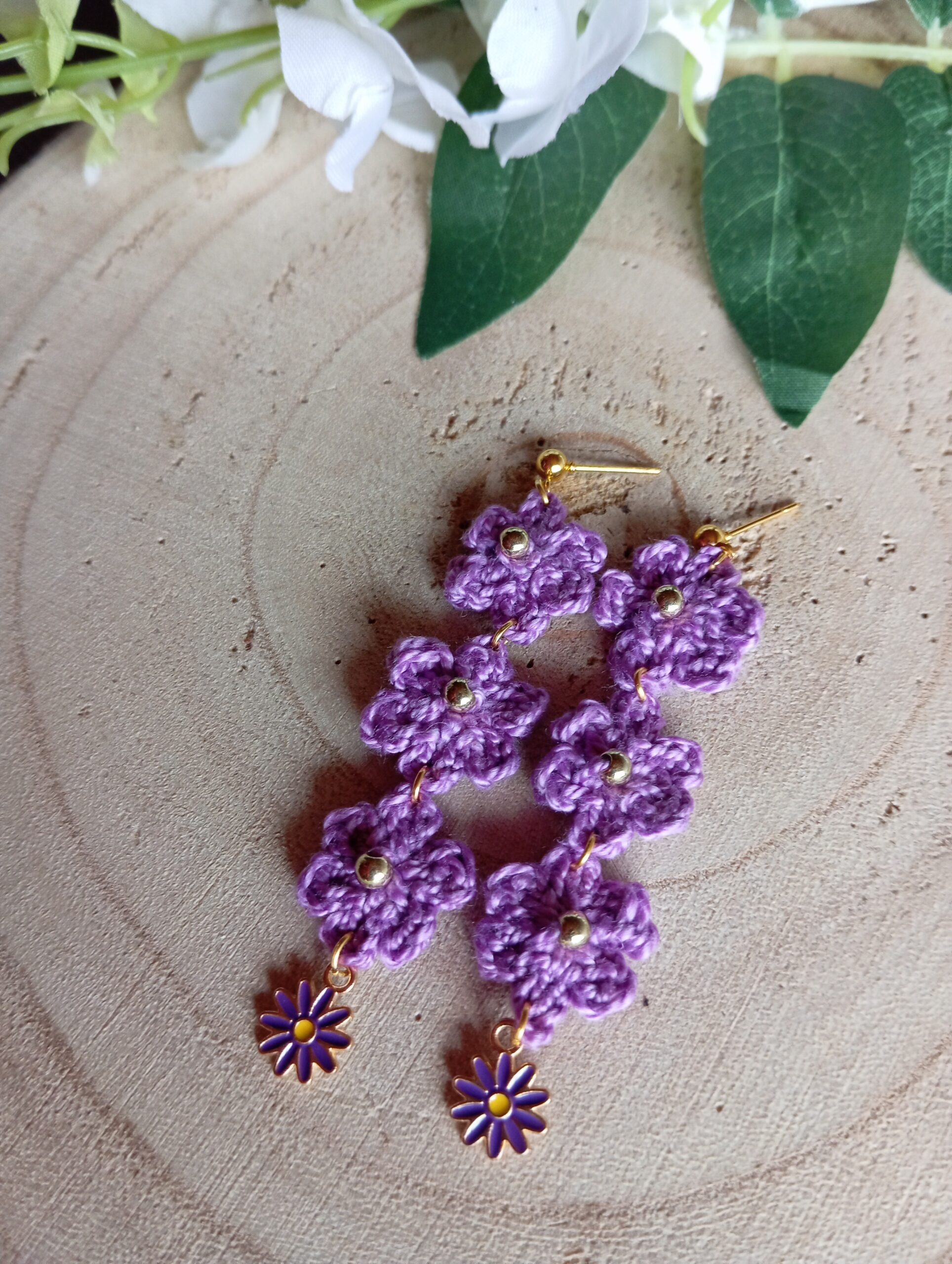 Pendientes de margaritas de color violeta y adornos en acero inoxidable
