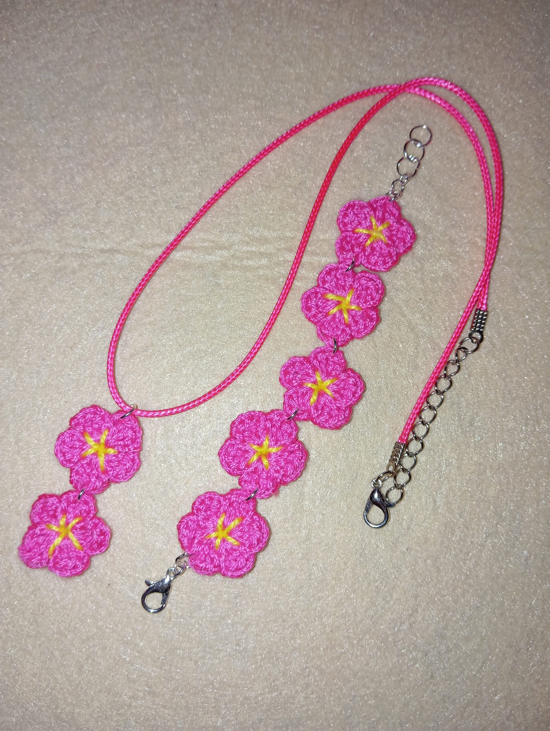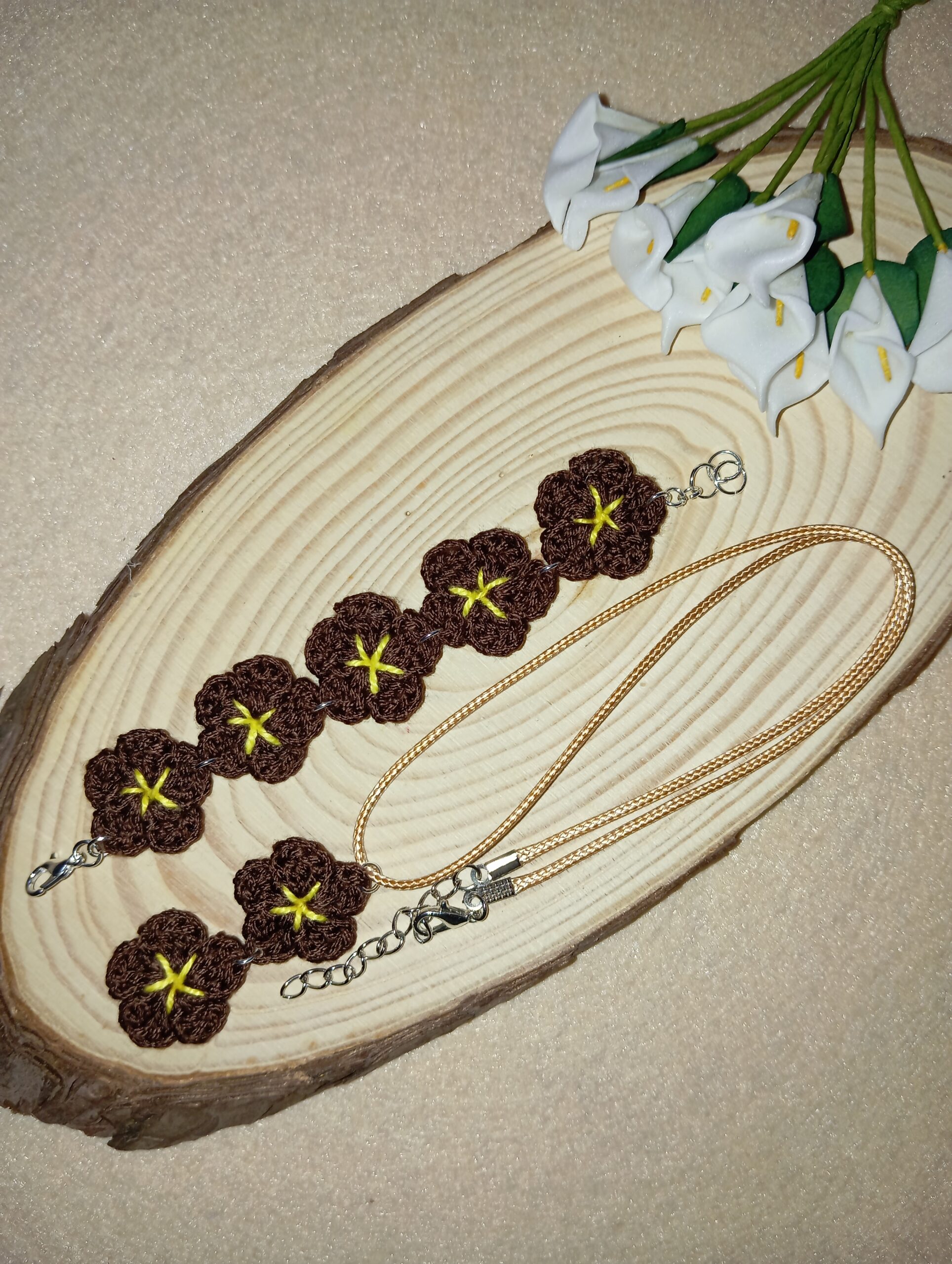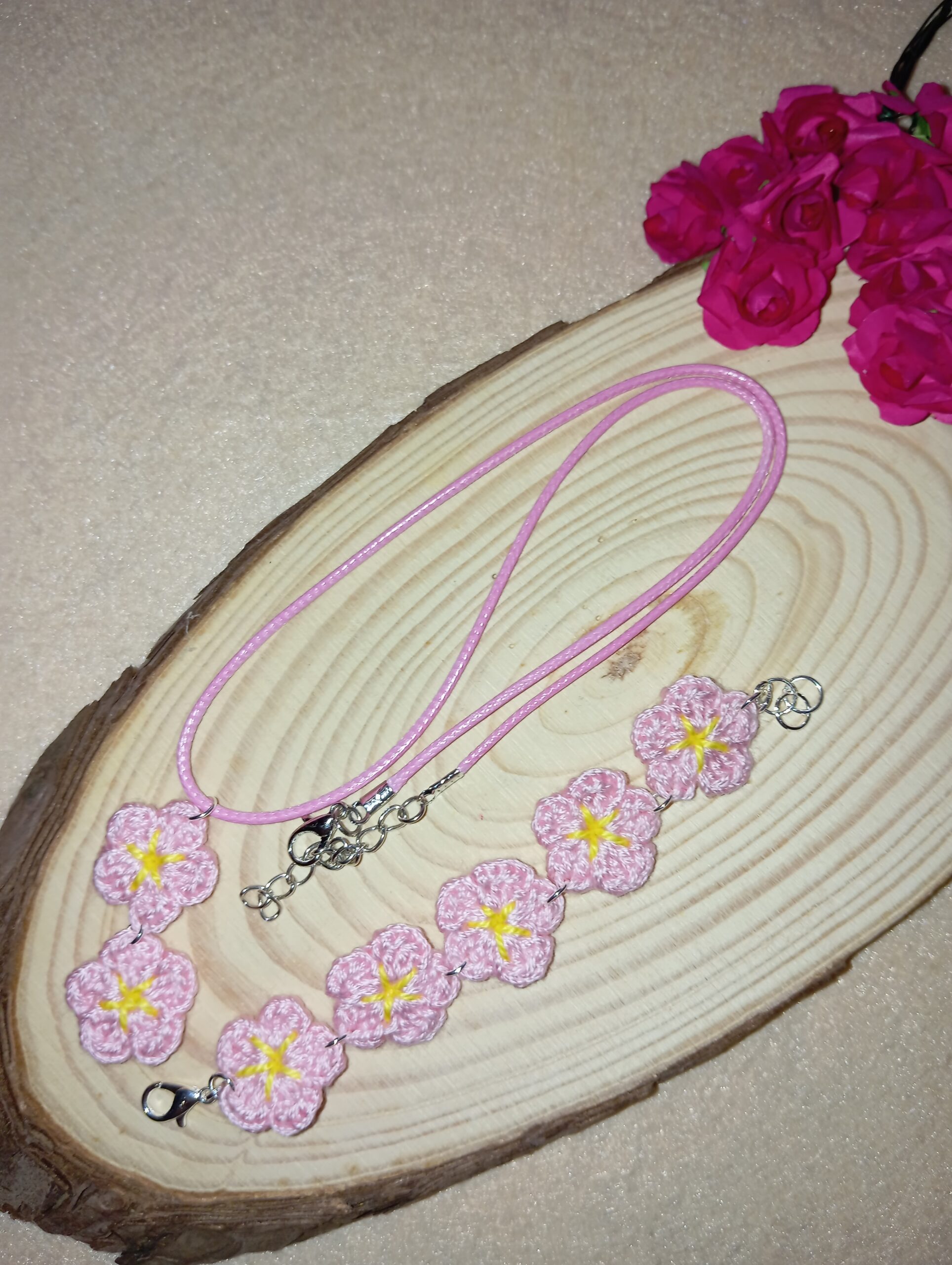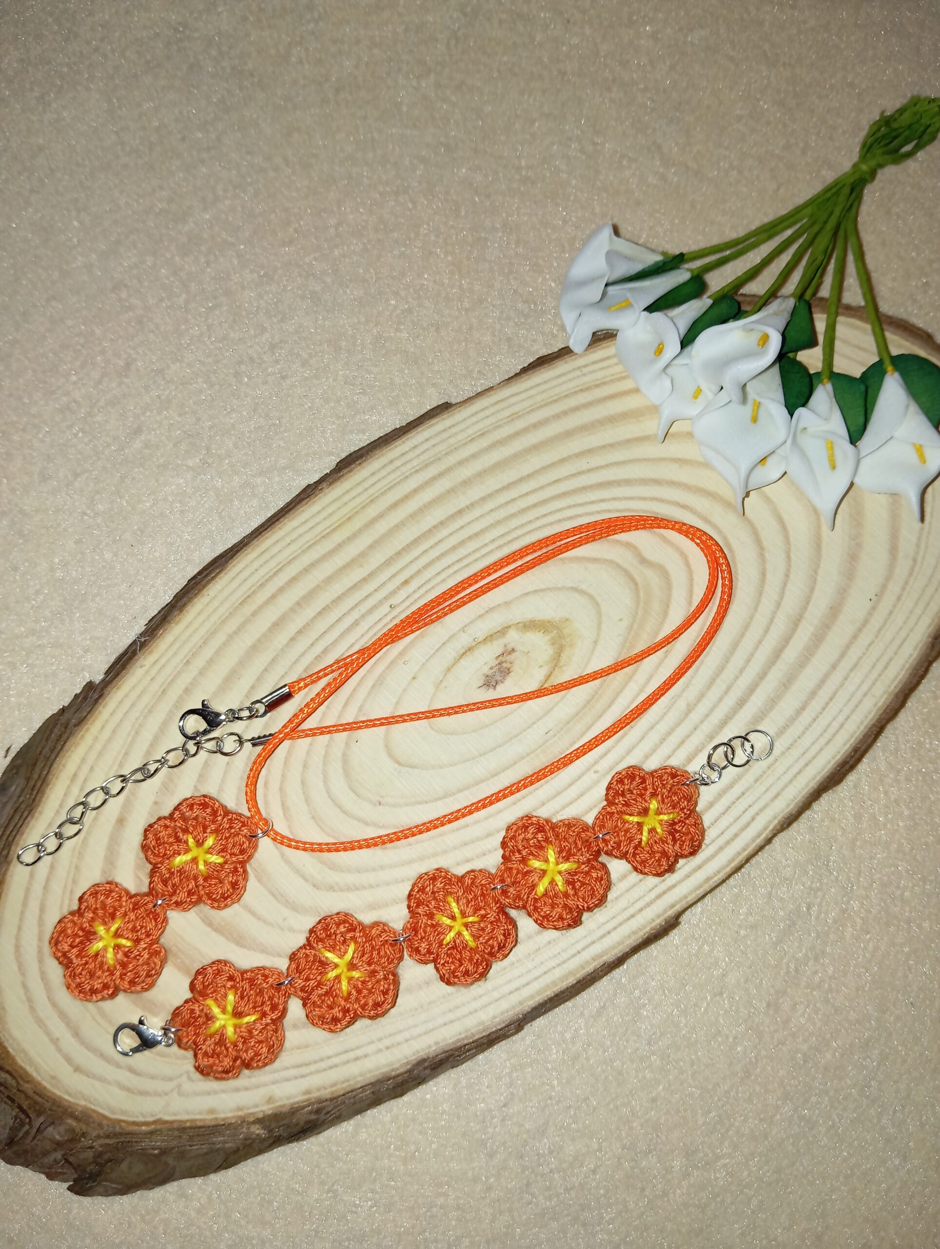 Conjunto de Pulsera de flores en crochet y colgante infantil 馃尭
