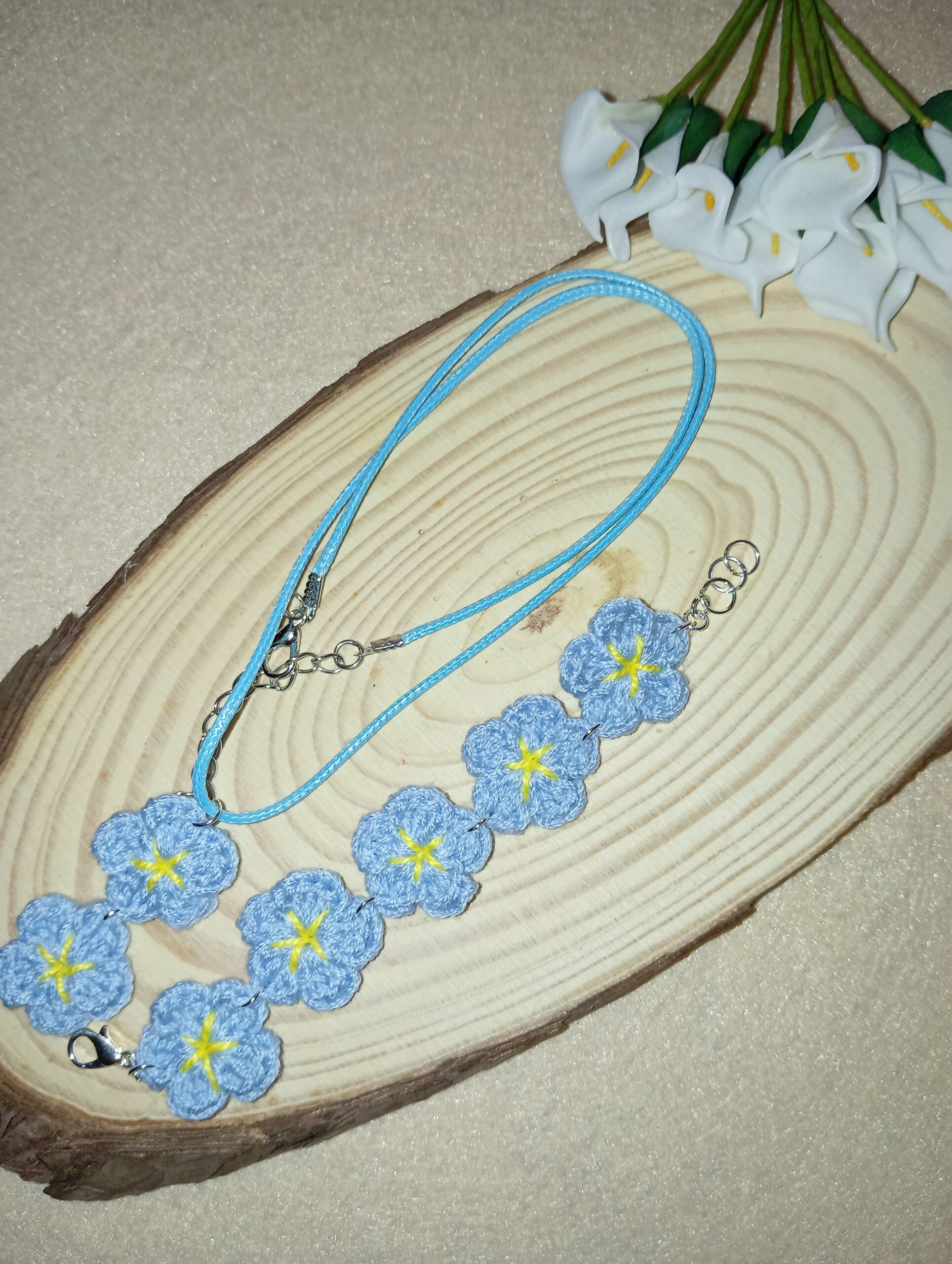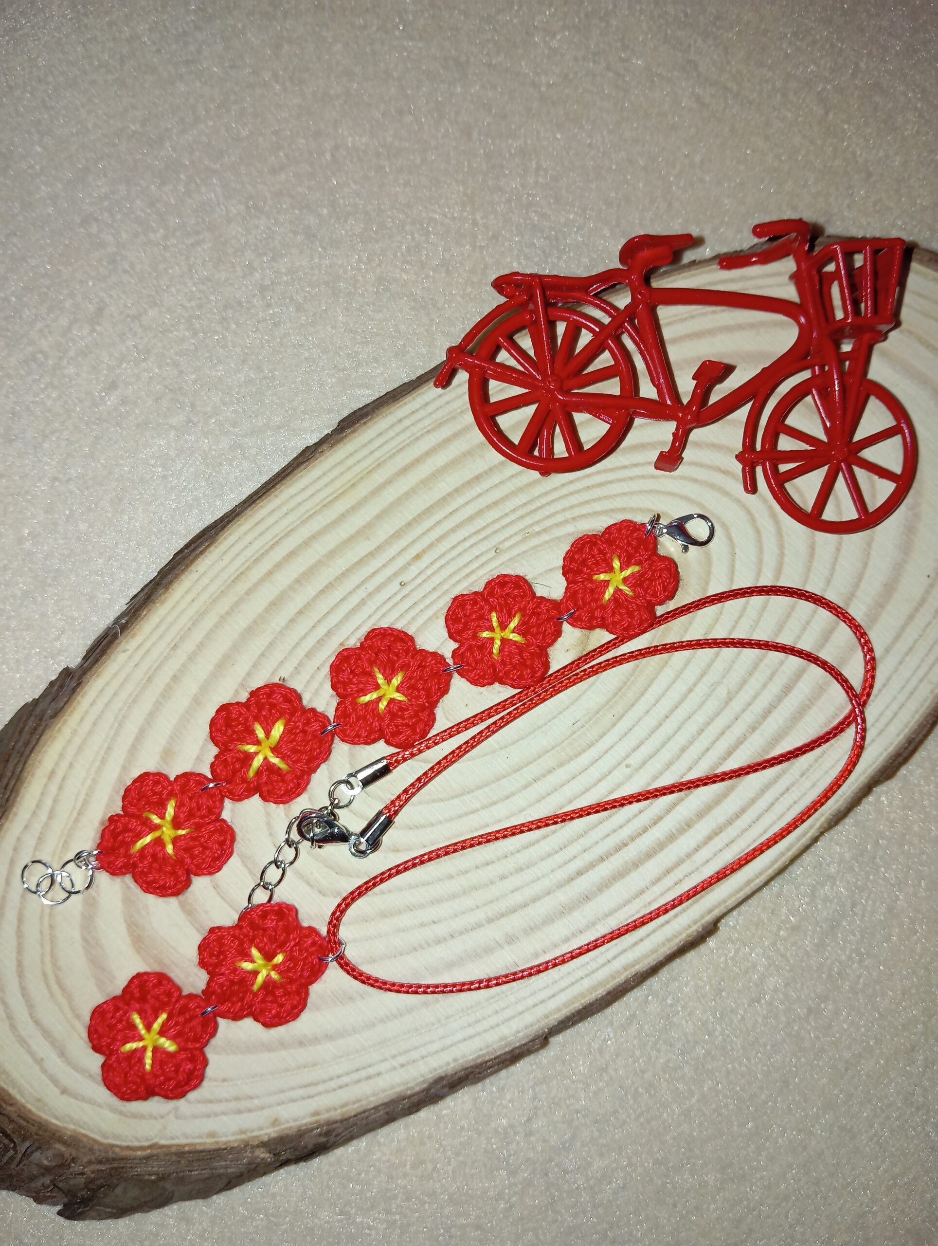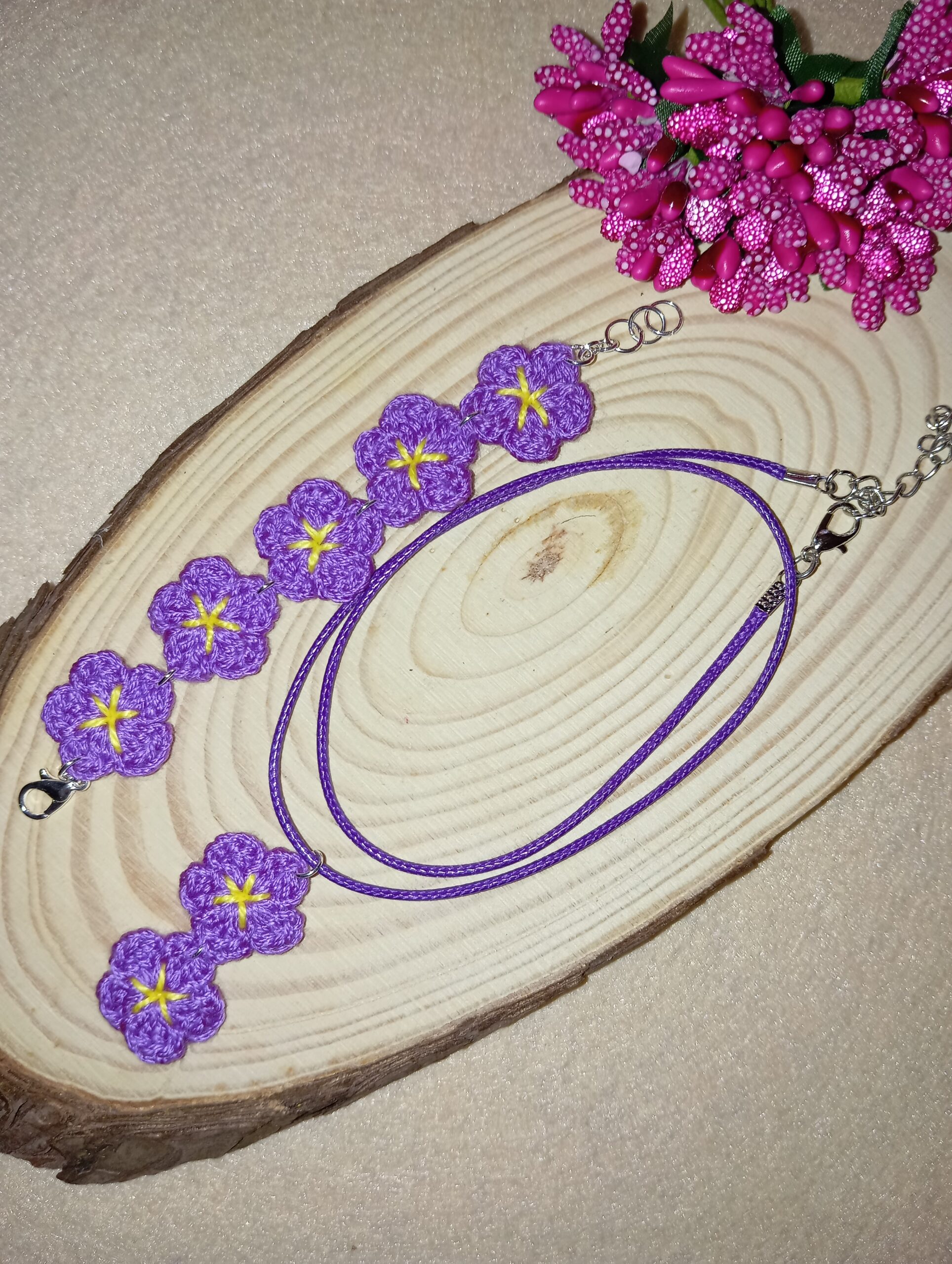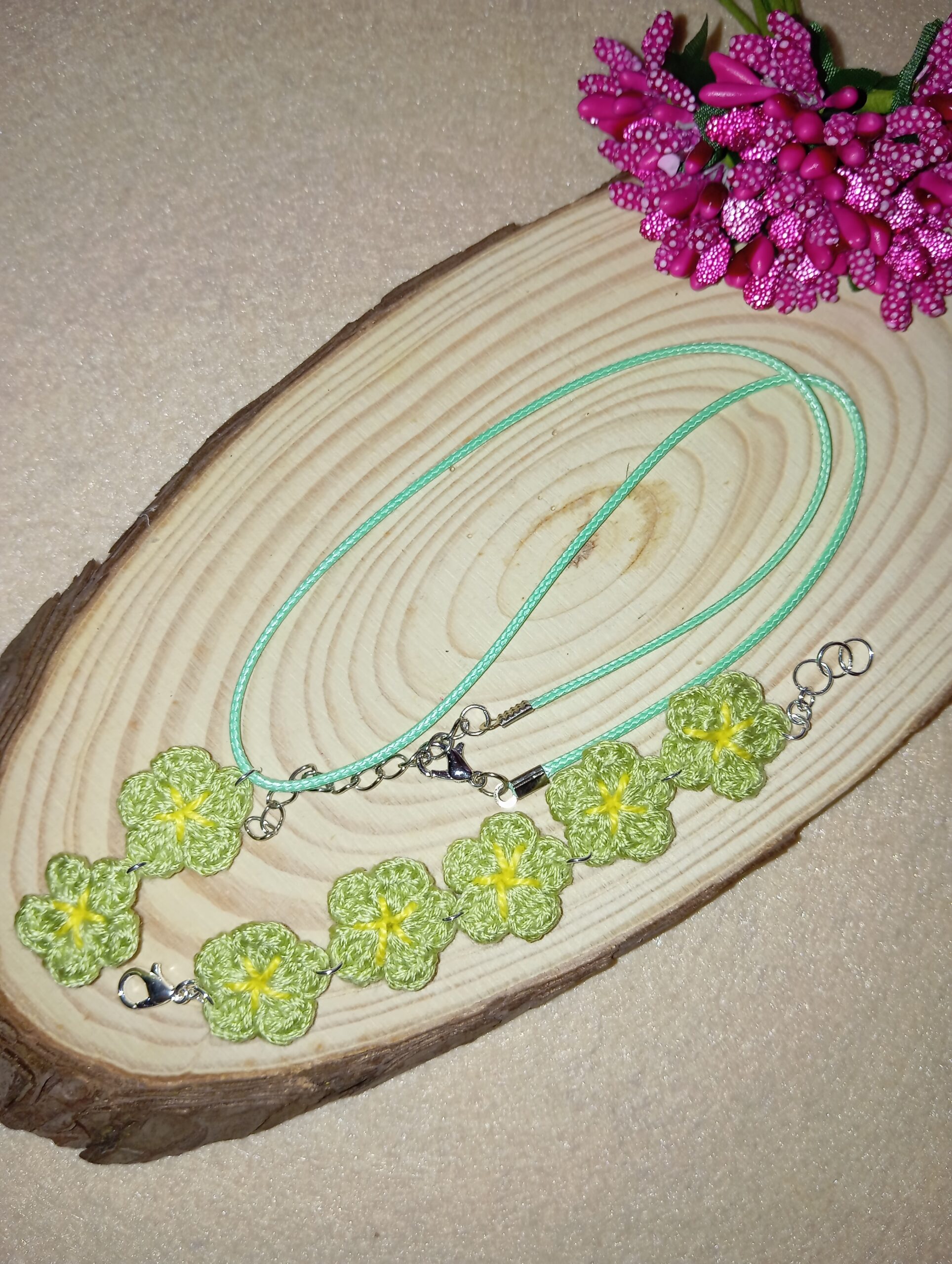 Conjunto de Pulsera de flores en crochet y colgante infantil 馃尭